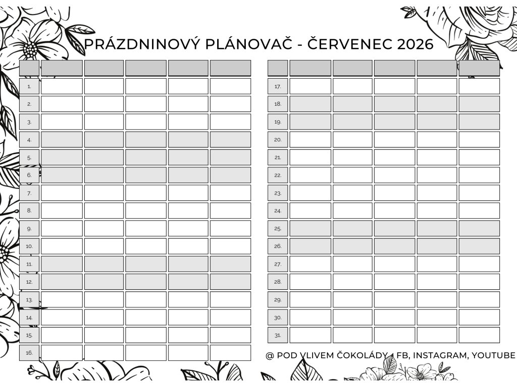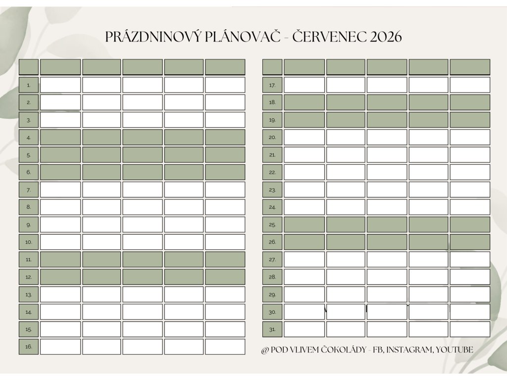 Plánovač letních prázdnin (červenec a srpen) pro celou rodinu ve formátu PDF!